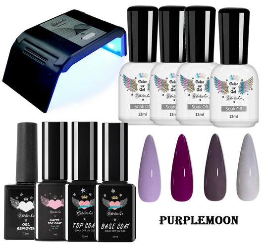 Gel Polish Nail Kit with UV Lamp - Kit PurpleMoon